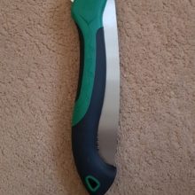 My husband bought this saw after watching some outdoor shows. I was wary of the saw, as he handed it over to our children to use, but my fears were put to ease as my kids used it safely. It cuts branches with ease, and I was able to cut through a smaller tree trunk! I would recommend this saw to anyone who wants to make a bugout bag, as this saw would come in very handy.
