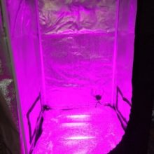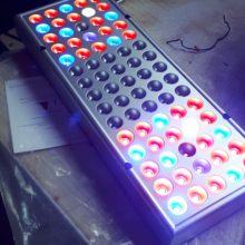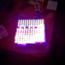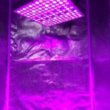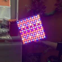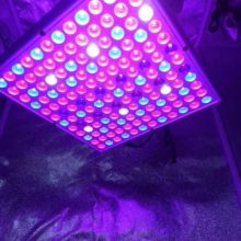 Need some glow (and grow) for your plants? Look no further than this warming display of violet light. This square array of lights is composed of 90 red LED bulbs and 36 blue LED bulbs.